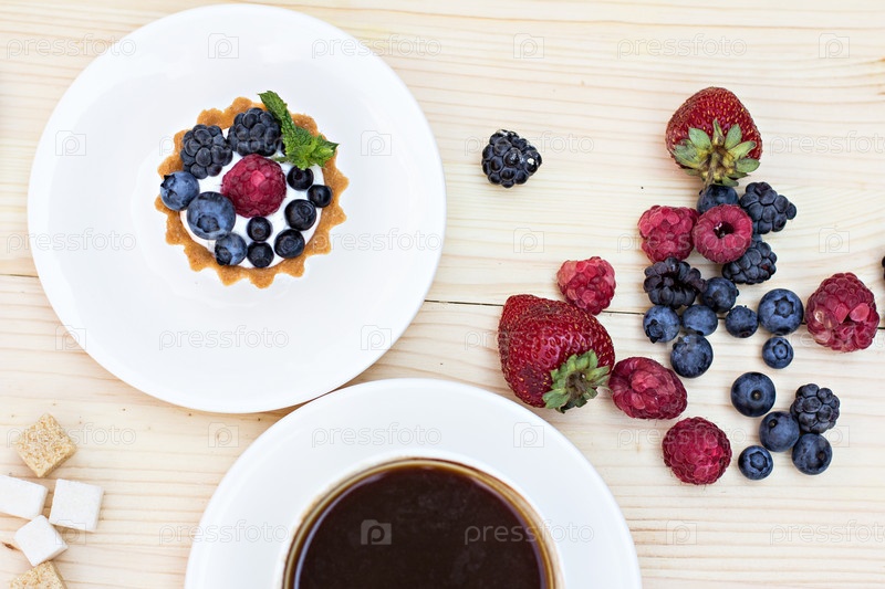 Тарт с свежими ягодами и кофе