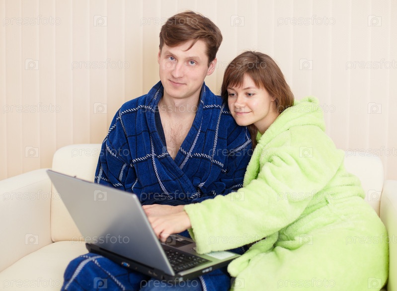 Молодая супружеская пара с ноутбуком