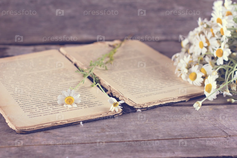 Букет ромашек и старинная книга