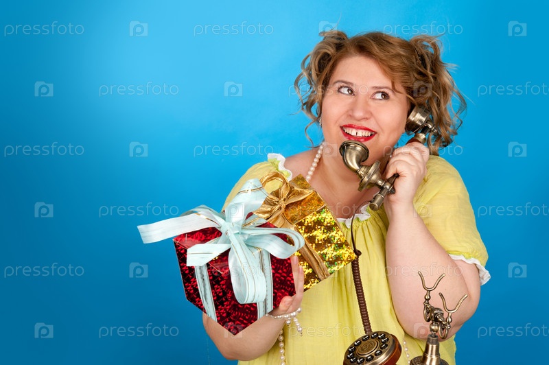 Счастливая полная женщина с подарком