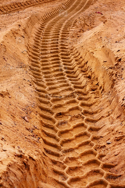 След от шины на песке