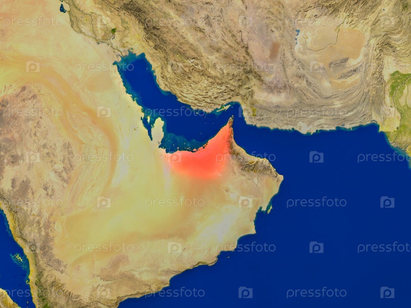 Объединенные Арабские Эмираты из космоса в красном