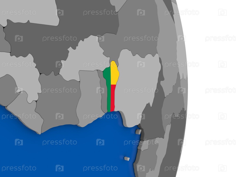 Бенин на земном шаре с флагом