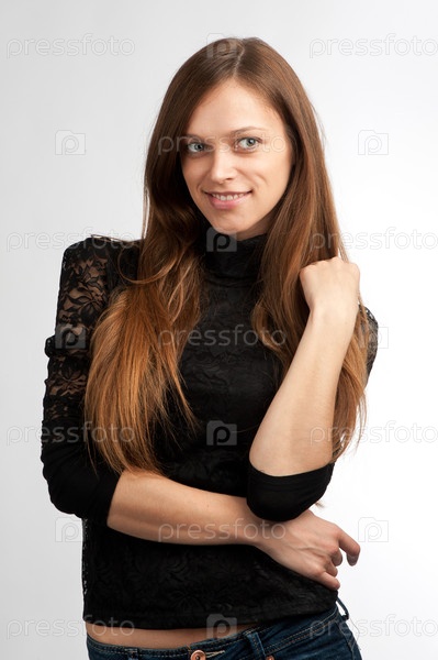 Портрет красивой молодой женщины на белом фоне