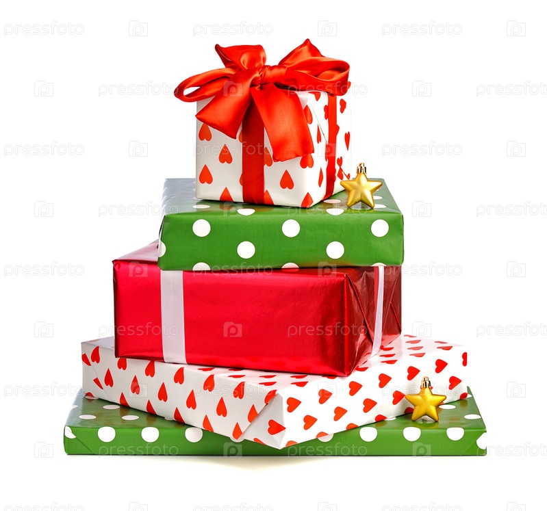 Стопка подарков, изолировано на белом фоне