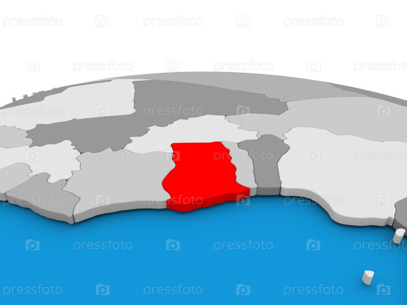Гана на земном шаре в красном