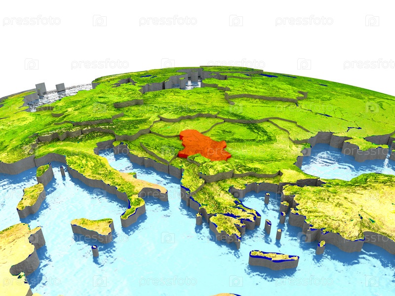 Сербия на Земле в красном