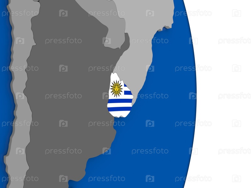Уругвай на земном шаре с флагом
