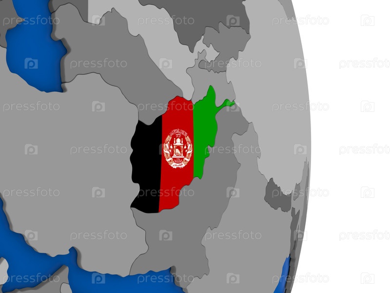 Афганистан на земном шаре с флагом