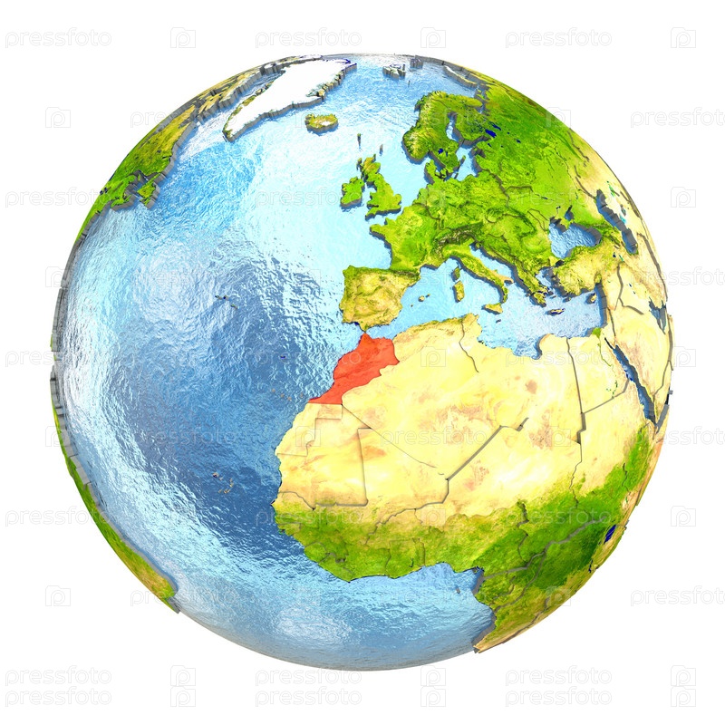 Марокко в красном на полной Земле