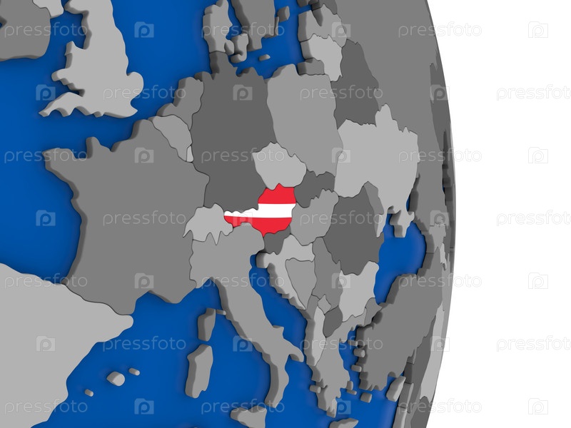 Австрия на земном шаре с флагом