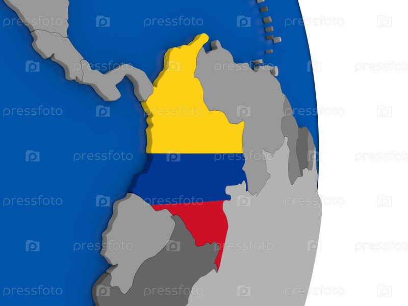 Колумбия на земном шаре с флагом