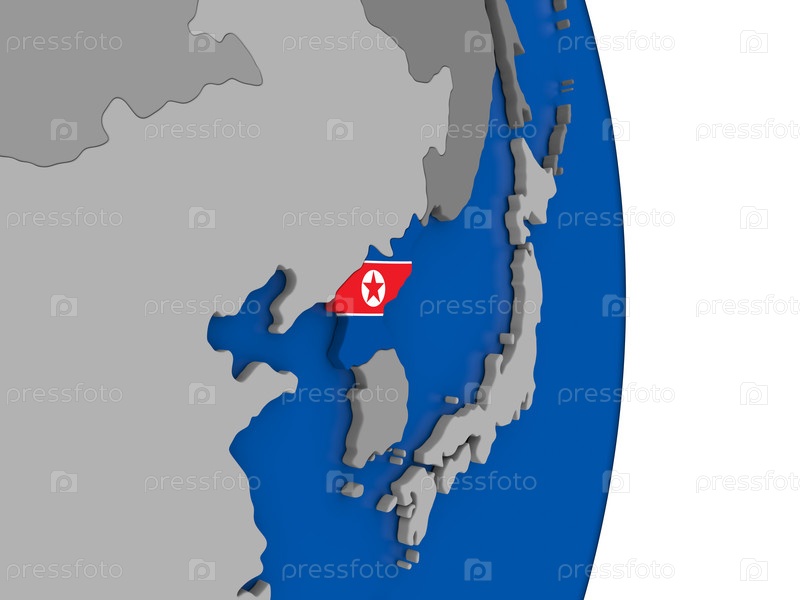Северная Корея на земном шаре с флагом