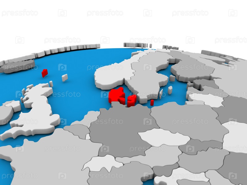Дания на земном шаре в красном