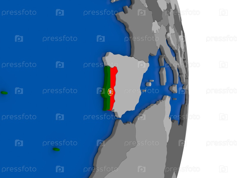 Португалия на земном шаре с флагом