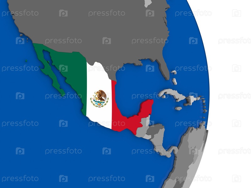 Мексика на земном шаре с флагом