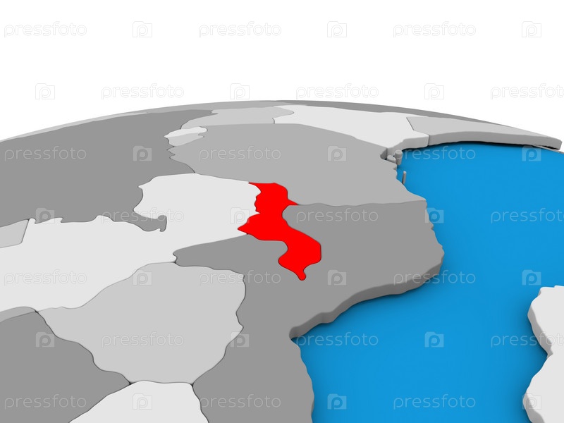 Малави на земном шаре в красном