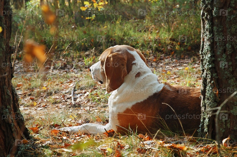 Охотничья собака в осеннем лесу