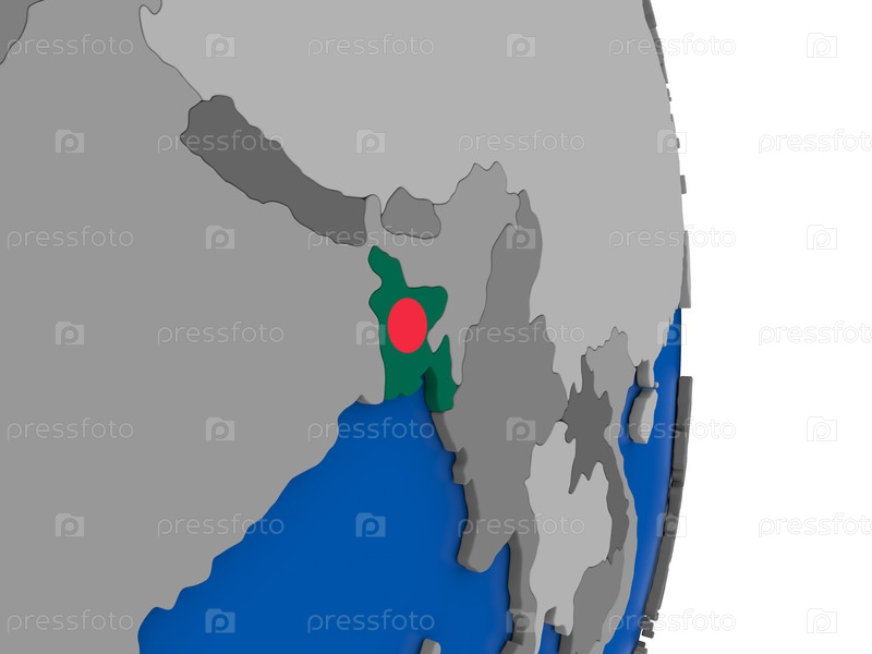 Бангладеш на земном шаре с флагом