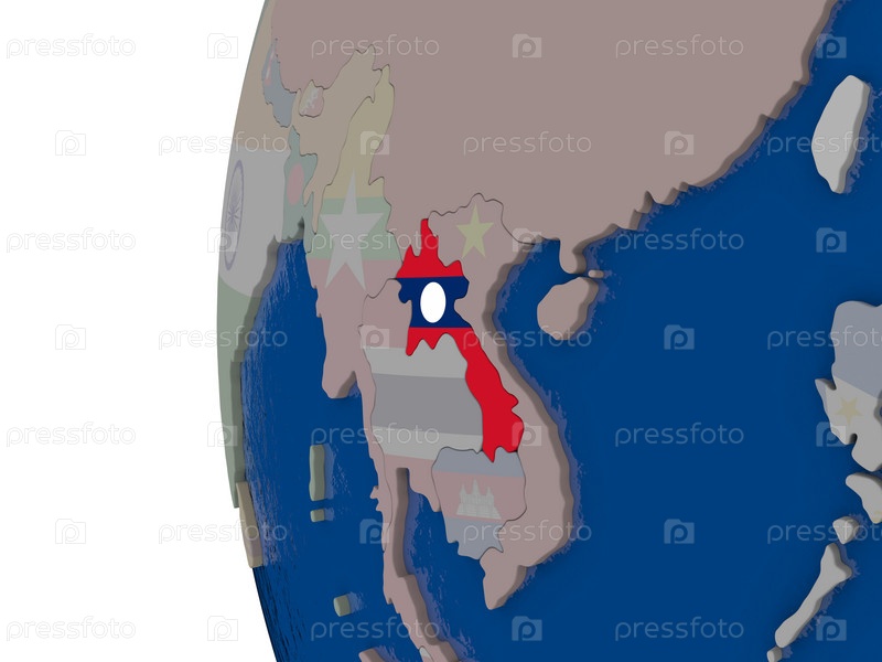 Лаос с национальным флагом