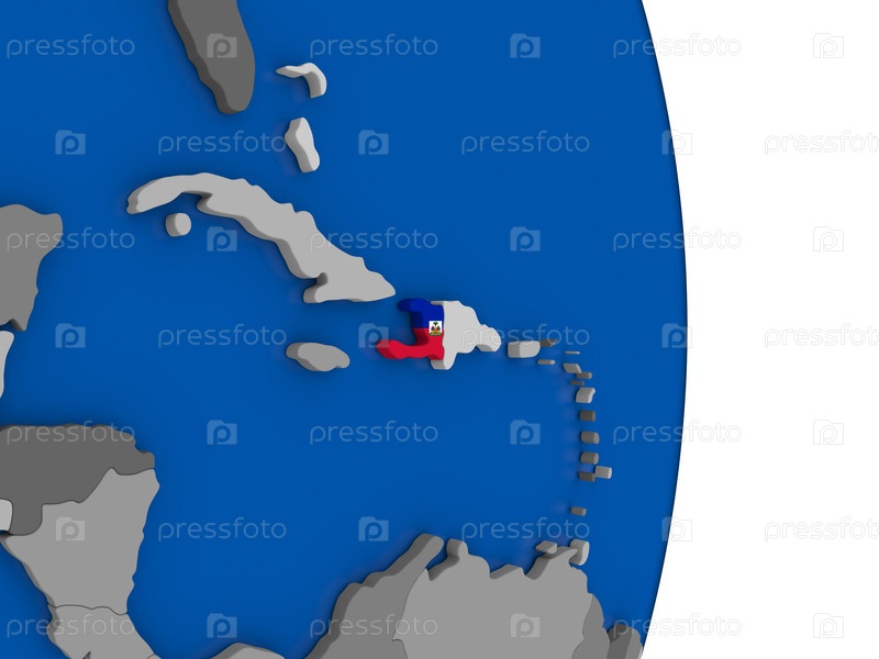 Гаити на земном шаре с флагом