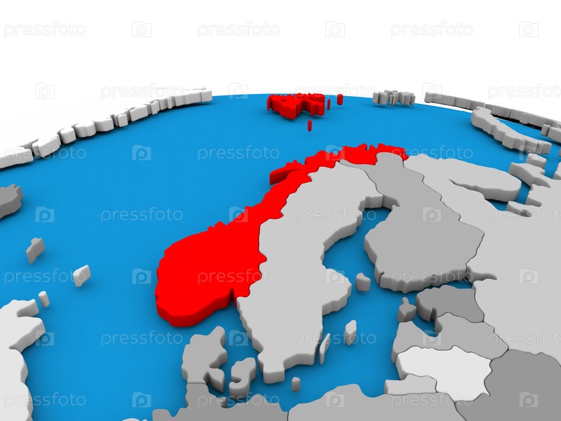 Норвегия на земном шаре в красном