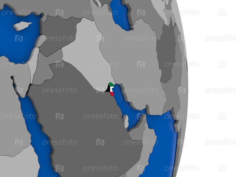 Кувейт на земном шаре с флагом