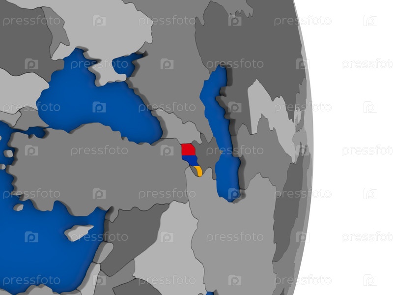 Армения на земном шаре с флагом