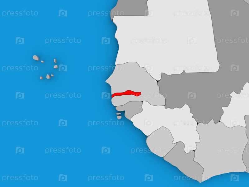 Гамбия в красном на земном шаре
