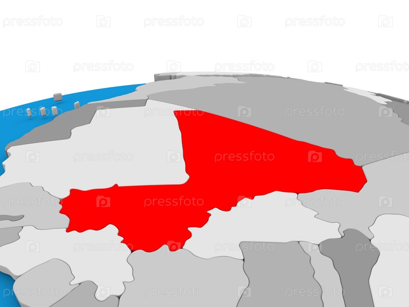 Мали на земном шаре в красном