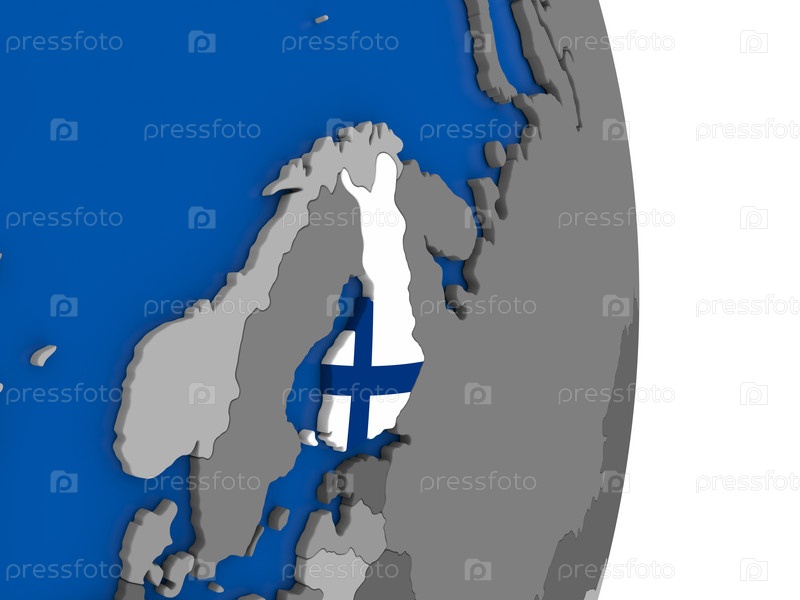 Финляндия на земном шаре с флагом