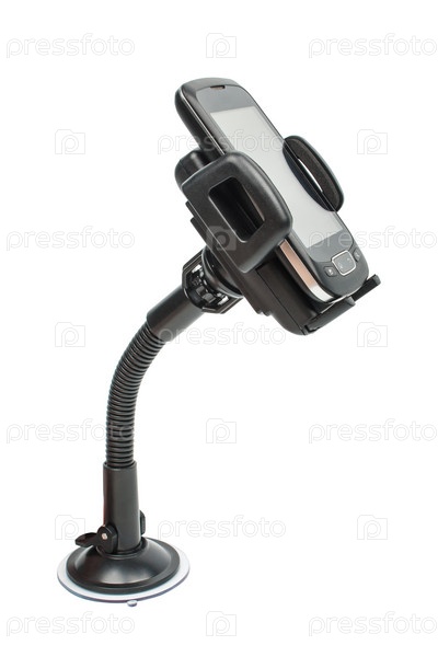 Смартфон в автомобильном держателе, изолировано на белом фоне