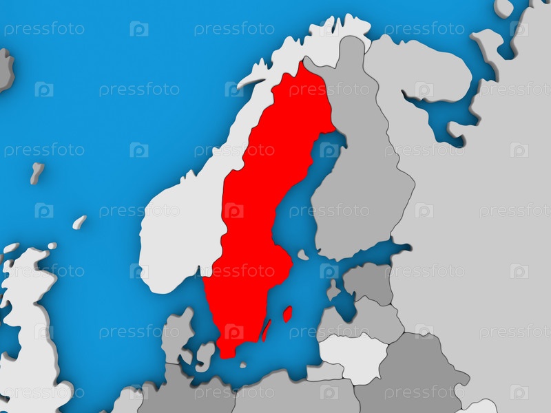 Швеция в красном на земном шаре