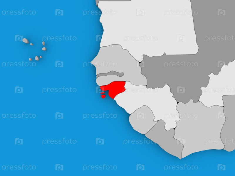Гвинея-Бисау в красном на земном шаре