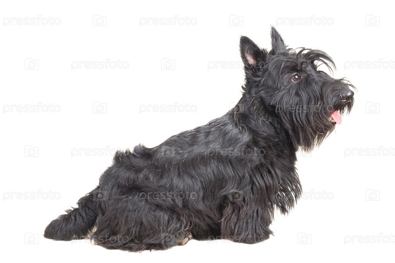 Щенок шотландского терьера на белом фоне