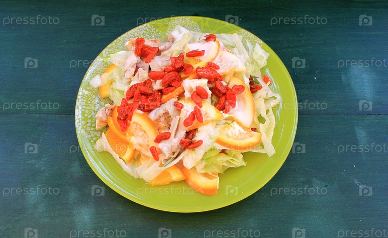 Салат из курицы и апельсинов с ягодами годжи