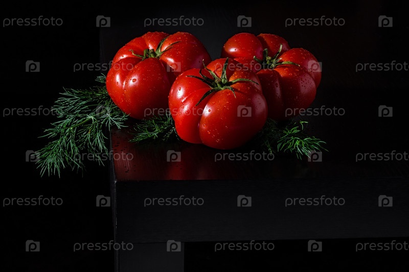 Сочные помидоры с укропом и капельками воды