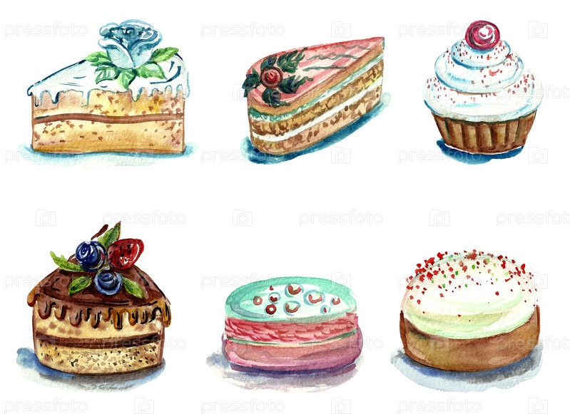 Набор акварельных пирожных