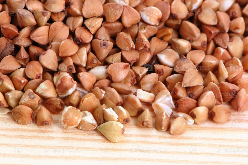 Гречневые семена на деревянной доске