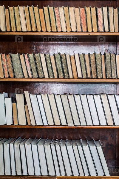 Старые книги на деревянной полке