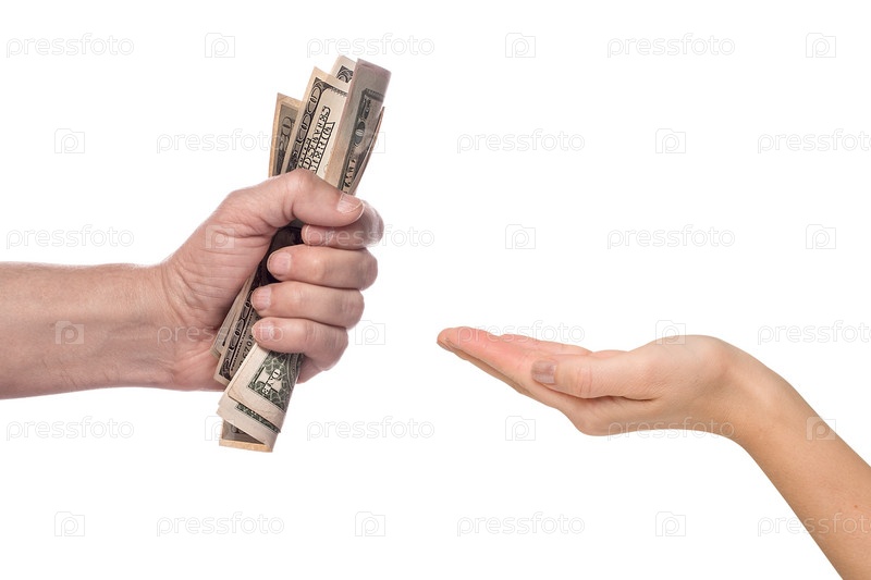 Мужская рука плотно сжимает несколько банкнот