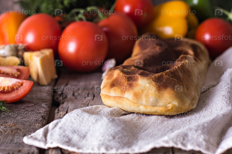 Самодельный рулет с курицей, сыром и овощами