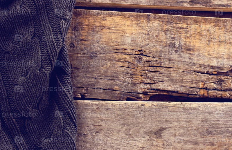 Вязаный плед на старых досках