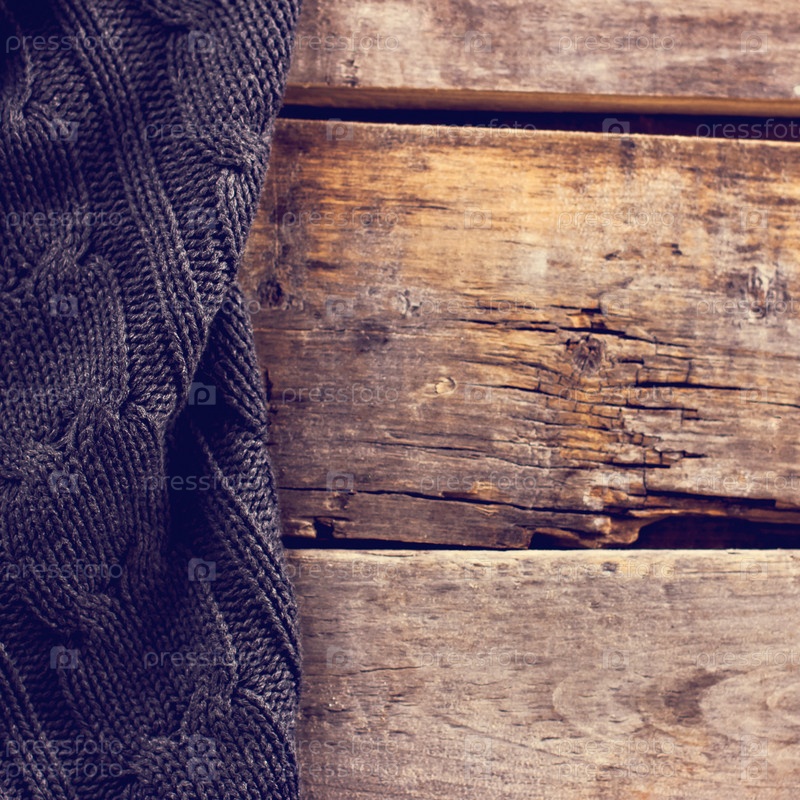 Вязаный плед на старых досках