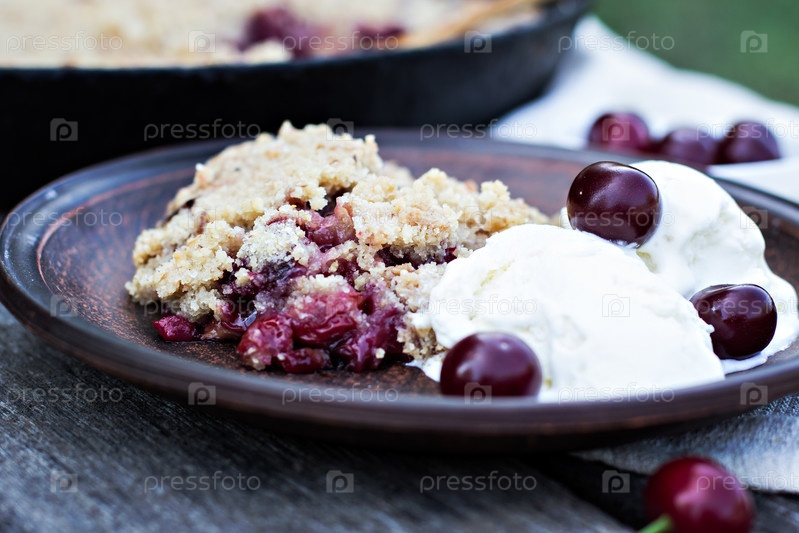 Домашний вишневый пирог с мороженым и вишнями
