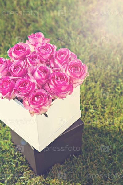 Букет из розовых роз в коробке