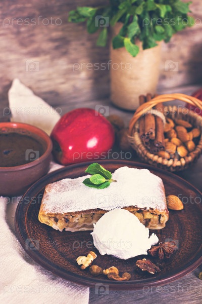Нарезанный яблочный штрудель