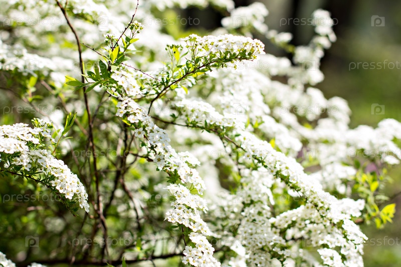 Красивый белый цветущий кустарник Spirea aguta (Венок невесты)