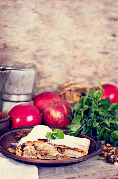 Вырезанный самодельный яблочный штрудель деревенский стиль Apple strudel