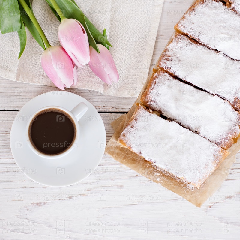 Пирог и весеннее украшение на белом фоне